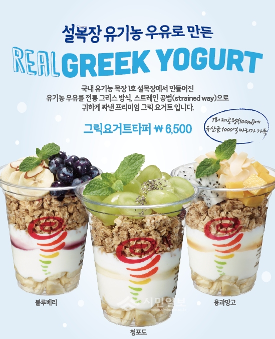 잠바주스의 그릭 요거트 타퍼는 유기농 우유를 사용해 그릭 요거트 원재료의 맛은 물론 영양까지 그대로 담아 낸 것이 특징이다.