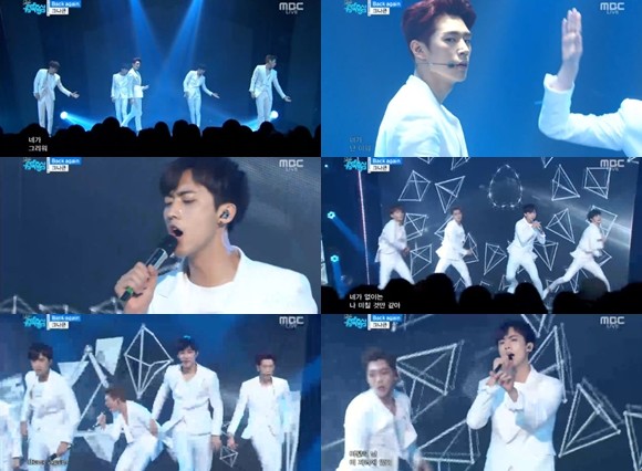 이날 크나큰은 '백 어게인(BACK AGAIN)'을 열창했으며 멤버들 모두 올 화이트 수트를 입고 등장해 시선을 집중시켰다.