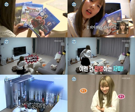 지숙은 3일 방송된 '나 혼자 산다'에서 집에 돌아온 뒤 새로 산 게임 CD들을 공개했다.