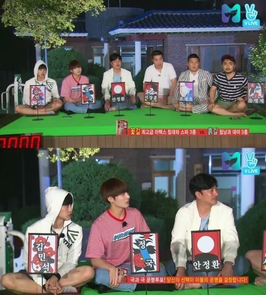 6일 오후 생방송된 네이버V ‘꽃놀이패’에서는 꽃길가 흙길 팀으로 나눠진 모습이 그려졌다.