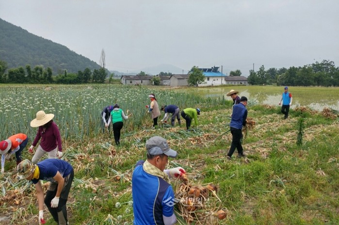 구미시 진미동, 양파수확작업 일손 돕기 봉사