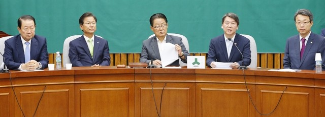 국민의당 안철수 상임공동대표가 7일 오전 국회에서 열린 의원총회에서 20대 국회 원구성 협상에서의 새누리와 더민주의 태도롤 향해 “소탐대실하지 말아야 한다”고 발언하고 있다.