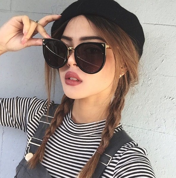 사진 속 그는 양갈래로 연출한 밝은 브라운 빛의 헤어에 베레모를 얹고, 작은 얼굴을 더욱 돋보이게 하는 선글라스에 장밋빛 입술을 빛내 팬들의 이목을 사로잡았다.
