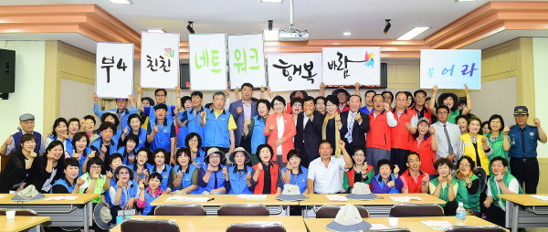 지난 8일 인천 부평구 부평4동 주민센터는 어울림센터 대강당에서 '부4친친 네트워크' 위원 100여명이 참석한 가운데 발대식을 개최했다. 사진은 홍미영 구청장(뒷줄 가운데)과 관계자들이 기념촬영하는 모습.(사진제공=부평구청)
