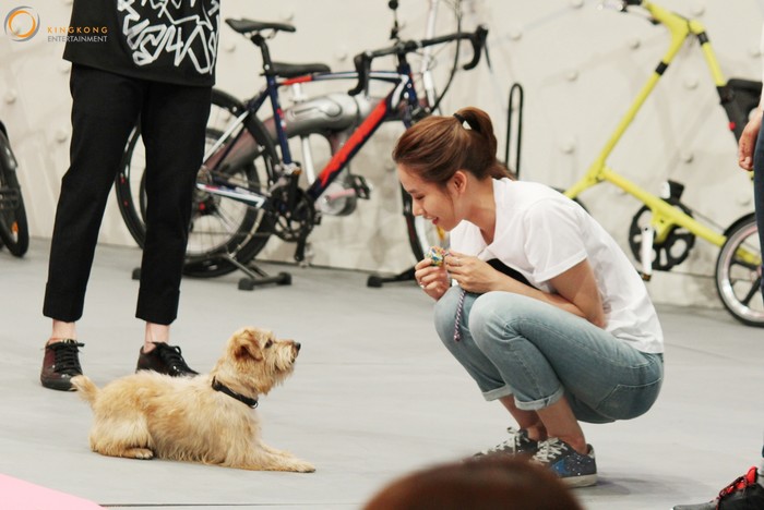 사진 속 조윤희는 강아지와 교감하기 위해 많은 노력을 쏟아 붓고 있어 아름다워보인다.