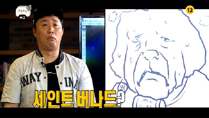 정준하가 세인트버나드와 똑같은 표정으로 그린 그림이 화제가 되고 있다.