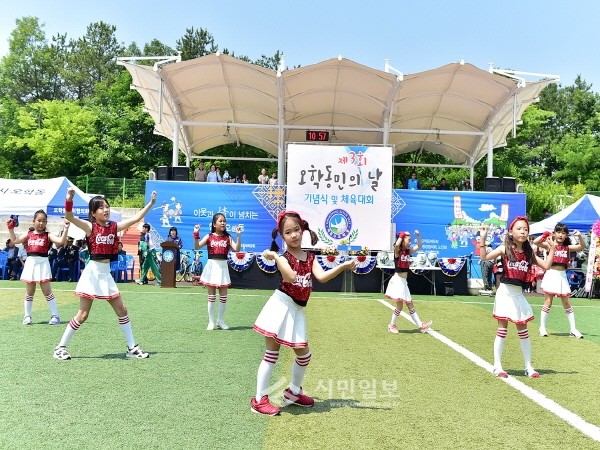 최근 경기 여주시 오학동은 오학체육공원에서 관계자 및 주민 등 1000여명이 참석한 가운데 제3회 오학동민의 날 기념식 및 체육대회 행사를 열었다. 사진은 오학초등학교 학생들이 어린이 방송댄스 공연을 펼치는 모습.(사진제공=여주포토)
