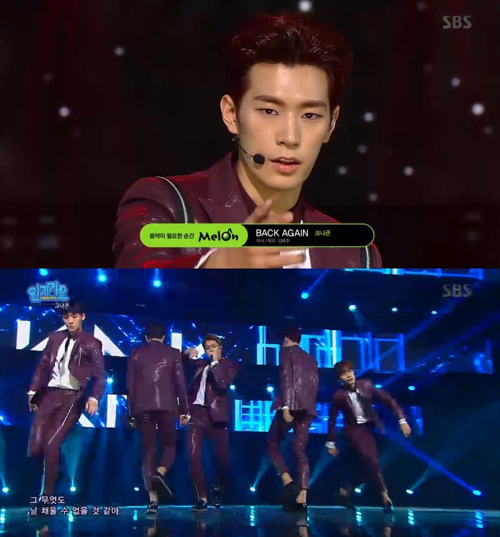그룹 크나큰이 12일 오후 방송된 SBS '인기가요'에 출연해 신곡 'Back Again'의 열정적인 무대를 선사했다.
