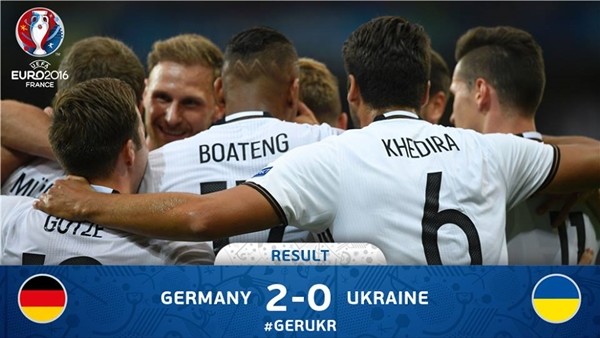 독일은 13일(한국시간) 프랑스 릴에 위치한 스타드 피에르-모루아에서 열린 우크라이나와의 '유로 2016' C조 조별리그 1차전 경기에서 2-0으로 승리했다.