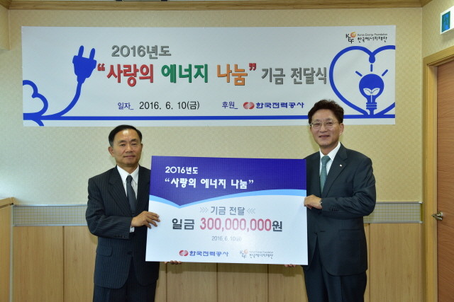 [시민일보=여영준 기자]한국전력은 지난 10일 전 직원들의 자발적인 급여 일부기부금과 회사의 지원금을 더해 마련된 '사랑의 에너지 나눔' 사업기금 3억원을 한국 에너지 재단 측에 전달했다.