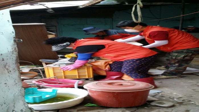 최근 경기 오산시 중앙동은 주민자치위원장, 복지통장, 부녀회장, 동 지역사회보장협의체 위원 등 30명이 참여한 가운데 지역내 맞춤형 수급자 가구를 방문해 주거환경 개선 봉사활동을 실시했다. 사진은 봉사 참가자들이 청소하는 모습.(사진제공=오산시청)