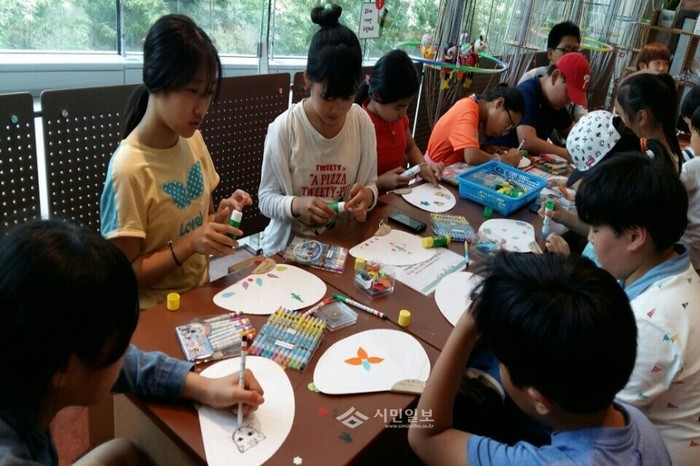 최근 전남 장흥군 장평초등학교는 병설유치원생 및 전체 초등학생들에게 학생들의 꿈과 끼를 키우는 기회를 확대하고자 광주시 일원으로 도시문화체험학습을 다녀왔다. 사진은 학생들이 단오부채를 만들고 있는 모습.(사진제공=장평초등학교)