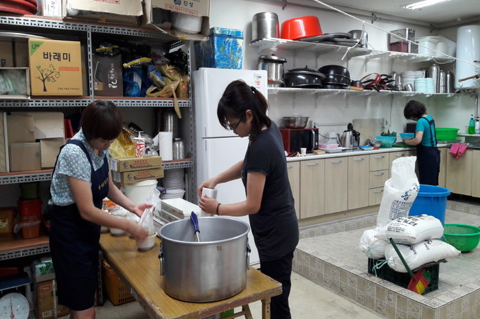 지난 14일 경기 동두천시 송내동 새마을 부녀회에서는 홀몸노인 및 장애인 등 소외계층 20가구를 위한 밑반찬 서비스를 제공했다. 사진은 봉사에 참석한 부녀회 관계자들이 반찬을 만드는 모습.(사진제공=동두천시청)