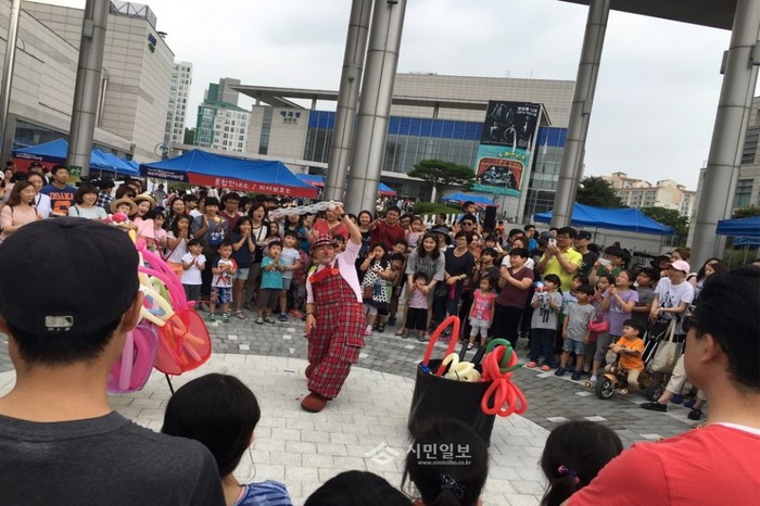 최근 '2016 하남부침개 페스티벌'이 경기 하남문화재단 주관으로 문화재단 광장 일대에서 시민 등 2만여명이 참여한 가운데 성황리에 개최됐다. 사진은 풍선 거리공연이 펼쳐지고 있는 모습.(사진제공=하남문화재단)