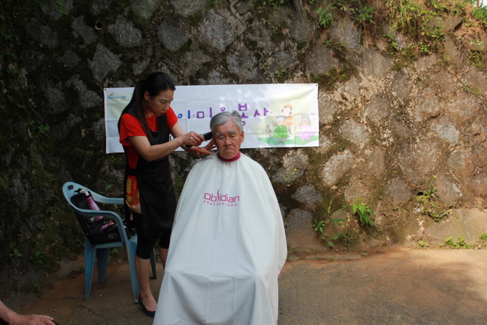 지난 14일 경기 동두천시 생연1동 주민자치위원회는 생연1동 지역내 경로당을 방문, 생활형편이 어려운 노인들에게 사랑의 이·미용 봉사를 실시했다. 사진은 주민자치위원회 관계자가 노인의 머리를 손질하는 모습.(사진제공=동두천시청)