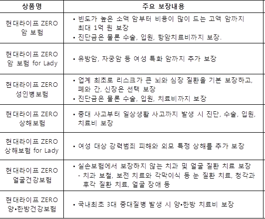 | ▲ [표 : 현대라이프 ZERO 상품구성] | ||