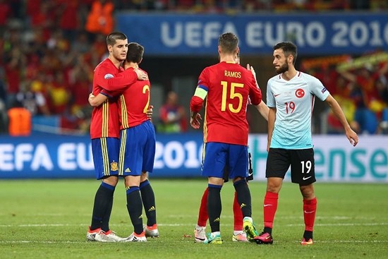 스페인이 터키와의 경기에서 3-0으로 완파하며 유로 2016 16강 진출에 성공했다.