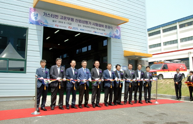 한전은 지난 17일 대전에 위치한 전력연구원에서 김동섭 한전 전력연구원장, 산업통상자원부, 5개 발전자회사, 한국기계연구원 등 50여명이 참석한 가운데 ‘발전용 가스터빈 신뢰성평가 시험설비’의 준공식을 가졌다.