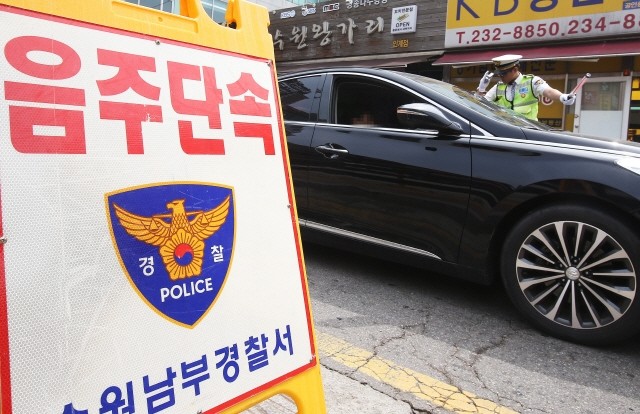 20일 오전 경기도 수원시 인계동의 한 골목에서 수원남부경찰서 경찰관들이 음주 단속을 하고 있다. 경기남부지방경찰청은 가용경력을 총동원해 주·야간 구분 없이 상시 음주운전 단속을 할 계획이다.