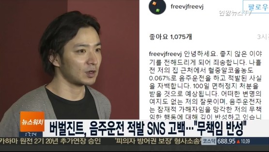 당시 제작진은 단속반과 함께 차량을 바로 뒤쫓아 단속 현장을 취재했고, 차량의 운전자는 버벌진트로 밝혀졌다. 이에 이번 음주운전 사건에 대한 네티즌들의 뜨거운 반응이 이어지고 있다.