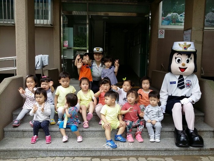 지난 20일 인천중부경찰서는 로뎀어린이집을 방문해 어린이 35명을 대상으로 올바른 교통질서 확립을 위한 '찾아가는 어린이 교통안전교육'을 실시했다. 사진은 교육에 참여한 어린이들이 경찰관과 기념촬영을 하는 모습.(사진제공=인천중부경찰서)