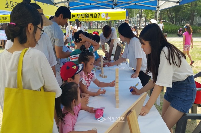 최근 경북 구미시와 시 지역사회보장협의체는 구평공원에서 지역사회 영유아 유관기관·단체, 봉사단 등 11개 기관이 참여해 지역아동과 부모 300여명을 대상으로 '영유아문화 체험마당'을 열었다. 사진은 어린이들이 체험놀이를 하고 있는 모습.(사진제공=구미시청)