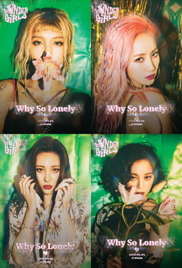 원더걸스는 24일 자정 JYP엔터테인먼트 공식 SNS를 통해 디지털싱글 'Why so lonely'의 첫 번째 티저인 멤버별 이미지 컷을 공개했다. 공개된 이미지 속 원더걸스는 멤버들의 4인 4색 대체 불가 매력을 그대로 발산하고 있다.