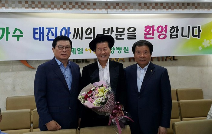 지난 23일 태진아는 스케줄로 인해 부산을 방문하던 중 바르게살기운동본부 이경신 부산지역 회장, 나라의료재단 최영호 이사장과 함께 제일나라병원을 찾아 병마와 싸우는 환자들을 위로하며 희망의 메세지를 전했다.