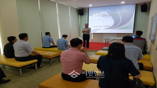 지난 23일 서울 은평소방서는 시민안전체험관에서 지하시설물(지하철역사ㆍ지하구) 관계자를 대상으로 소방안전교육을 실시했다. 사진은 소방관이 참여자들에게 교육을 진행하는 모습.(사진제공=은평소방서)