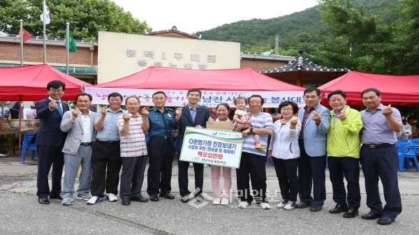 최근 전남 장흥군 정남진사랑나눔봉사대는 유치면 봉덕1구 마을(봉덕2구ㆍ대천ㆍ용문)에서 이·미용서비스, 농기계 수리, 집안청소, 도배·장판 등 20개 분야에서 봉사활동을 실시했다. 사진은 관계자들이 기념촬영하는 모습.(사진제공=장흥군청)