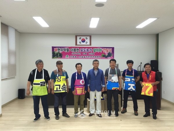포천시 소홀읍주민자치委, 포도농가에 폐현수막 앞치마 전달