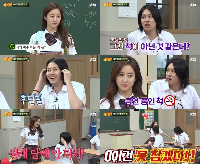 그가 낸 문제는 "전혜빈이 자주 하는 척은?" 이었다. 이에 '아는형님' 멤버들은 "못생긴 척" "성유리 닮은 척" "정신나간 척" "지적인 척" 등 쉴 새 없이 이상한 답들을 내뱉었고 전혜빈의 인내심을 건들였다.