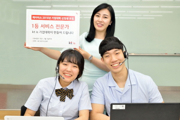 [시민일보=최민혜 기자]KT 그룹의 고객센터 전문기업 KT IS(케이티스)가 ‘고졸채용 활성화’와 ‘1등 서비스 전문가’ 육성을 위해 2016년 기업대학 신입생을 공개 모집한다.