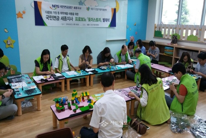 최근 세종건강가정·다문화가족지원센터는 도담동 공동육아나눔터에서 국민연금공단 세종지사내 토이스토리봉사 동호회와 함께 취약위기가정 아동 등 20명에게 전달할 '장난감 만들기 봉사활동'을 실시했다. 사진은 참가자들이 장난감을 만들고 있는 모습.(사진제공=세종시청)