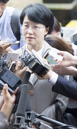 국민의당 총선 홍보물 리베이트 수수를 지시하고 보고받은 의혹이 제기된 국민의당 박선숙 의원이 조사를 받기 위해 27일 오전 마포구 서울서부지방검찰청으로 들어서며 취재진의 질문에 답하고 있다.