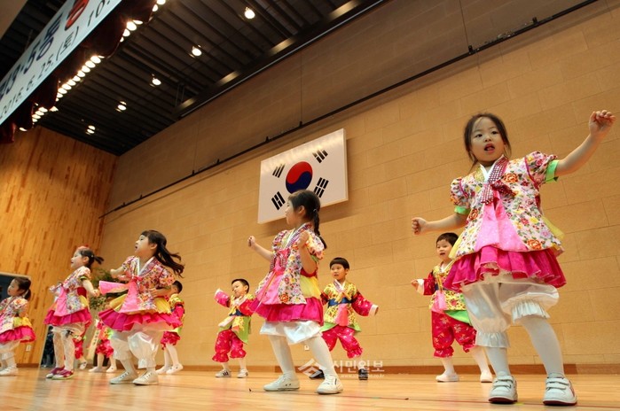 최근 인천 동구 송림3·5동은 동산고등학교 대강당에서 주민 500여명이 참석한 가운데 ‘제7회 송림3·5동 동민 화합의 날 기념식 및 체육대회’를 성황리에 개최했다. 사진은 어린이들이 축하공연을 펼치고 있는 모습.(사진제공=인천 동구청)