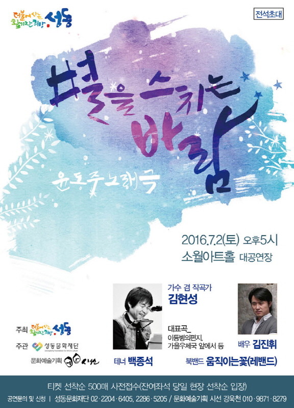 오는 7월2일 소월아트홀에서는 오후 5시 윤동주 시 노래극 <별을 스치는 바람> 공연이 열린다.