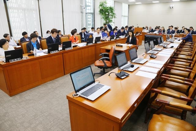 28일 오전 열린 국회 보건복지위원회 전체회의에 새누리당 의원들의 자리가 비어 있다. 이날 보건복지위는 국민건강보험법·영유아보육법 등 11개 법안을 안건으로 올려 심사하기로 했지만 새누리 의원들의 불참으로 정상적인 회의가 열리지 못했다.