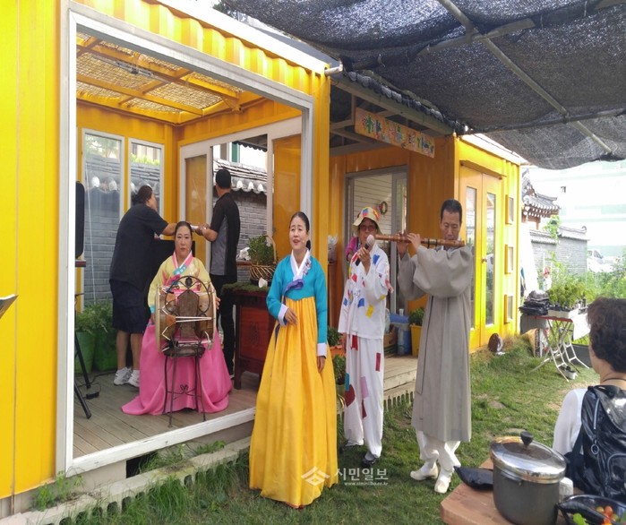 최근 경기 수원시 권선구 서둔동에서는 여기산 커뮤니티가든에서 '여름절기 팜 파티'를 진행했다. 사진은 행사에 참석한 국악인들이 시조창 및 대금연주를 진행하는 모습.(사진제공=권선구청)