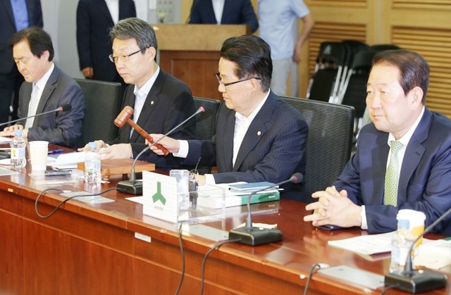 30일 오전 국회 의원회관에서 열린 국민의당 의원총회에서 박지원 비대위원장이 회의를 주재하고 있다.
