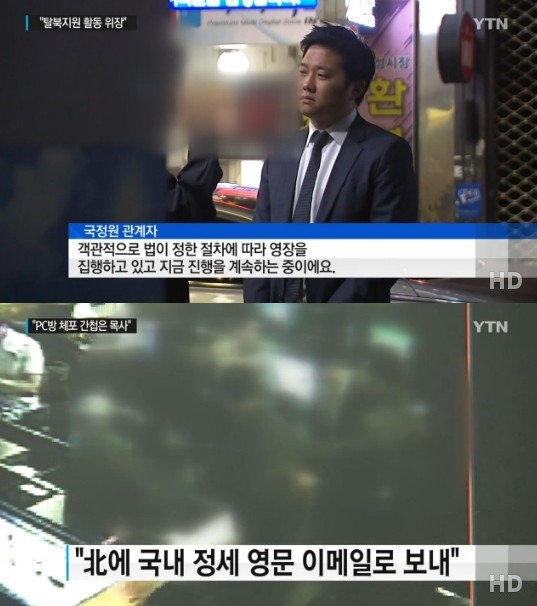 지난 1일 열린 국회 업무보고에서 국정원은 지난 5월 간첩 혐의자를 체포하는 영상을 공개했다. 해당 영상 속에는 지난 5월 25일 일명 'PC방 간첩'을 구속하는 과정이 담겼다. 국정원은 또 이 간첩 혐의자가 그동안 탈북지원 활동을 해온 현직 목사라고 설명했다.