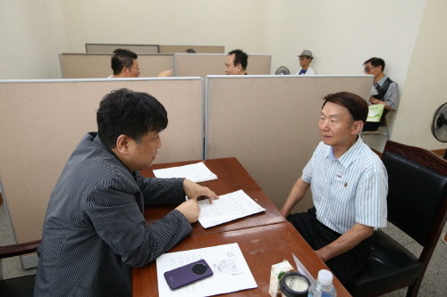 지난 30일 서울 금천구는 55세 이상 남성주민을 대상으로 구청 12층 대강당에서 전립선 질환 관련 강좌와 검진을 실시했다. 사진은 비뇨기과 전문의가 참여자와 상담하는 모습.(사진제공=금천구청)