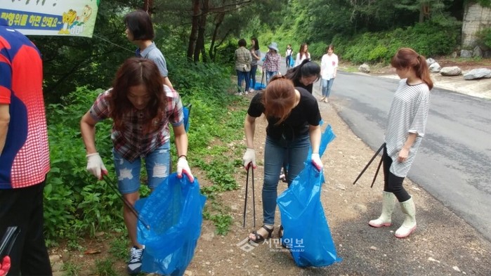 최근 경기 동두천시 주민생활지원과 직원들은 휴가철 방문객들의 불편사항을 최소화하기 위해 자연발생유원지 내 왕방계곡 주변 환경정화 봉사활동을 실시했다. 사진은 직원들이 쓰레기를 수거하고 있는 모습.(사진제공=동두천시청)