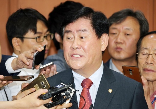 새누리당 친박(친박근혜)계 좌장인 최경환 의원이 6일 오전 국회 정론관에서 기자회견을 열고 ‘8.9 전당대회’에 출마하지 않겠다고 선언한 뒤 기자들의 질문에 답하고 있다. 최 의원은 “당의 화합과 박근혜 정부의 성공, 정권 재창출을 위한 제단에 다시 한번 나를 바치고자 한다”면서 “이번 전대에 출마하지 않겠다”고 밝혔다.