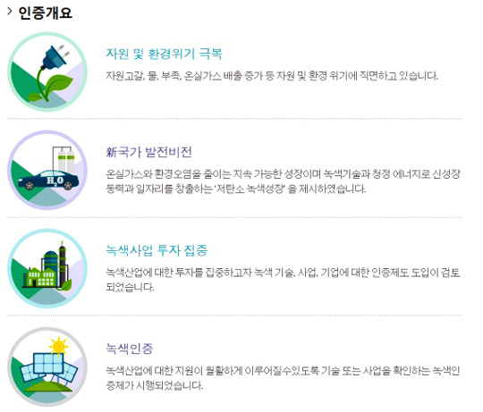 녹색인증은 ‘저탄소 녹색성장 기본법’에 의거해 유망한 녹색기술 또는 사업을 인증해 주는 녹색인증 제도를 말한다.