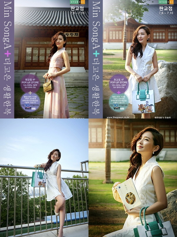 홍익대 회화과 출신으로 배우와 화가 활동을 겸하며 실상부 아트테이너의 위상을 떨치며 왕성한 활동을 이어가고 있는 민송아는 더고은생활한복과 함께 진행한 콜라보레이션 한복을 현대백화점 판교점에서 선보인다.