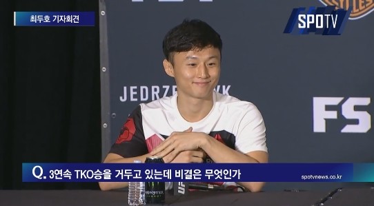 한편 최두호는 이날 경기 후 기자회견에서 "나는 항상 내가 세계 최고의 파이터라고 생각한다. 꼭 챔피언이 되도록 노력하겠다"고 소감을 밝혀 이목을 집중시켰다.