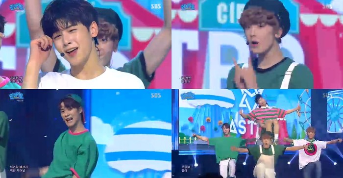 이날 아스트로는 화사한 느낌의 의상을 입고 등장했다. 이들은 깜직한 안무와 안정적인 가창력으로 상큼한 매력을 나타냈다.
