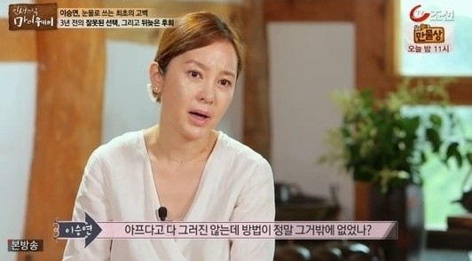 이승연은 10일 오후 방송된 TV조선 '인생다큐 마이웨이'에 출연해 살면서 가장 힘들었던 순간을 가장 최근 일(프로포폴 사건)이라고 언급했다.