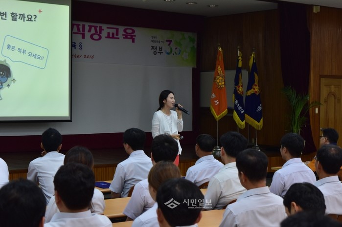 지난 11일 경기 시흥소방서는 직장내 건전한 성문화 조성을 위해 소방서 전직원을 대상으로 '성희롱·성매매 예방교육'을 실시했다. 사진은 이날 강의에 나선 허성미 강사가 성희롱 예방에 필요한 내용을 교육하는 모습.(사진제공=시흥소방서)